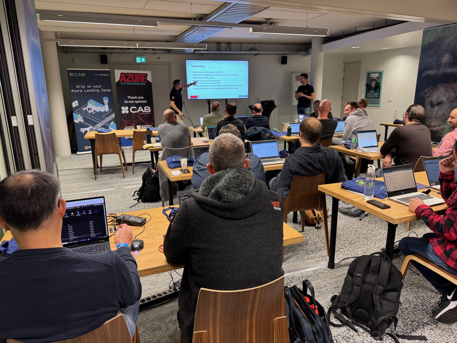 Op 9 december 2025 vond de tweede APE XXL plaats in Apenheul. Een dag vol Azure platform engineering — van Bicep extensions en KQL detectie tot AI agents, sovereign cloud, en een full-day workshop over cloud-native platforms. Hieronder de elf sessies en de mensen die ze brachten.